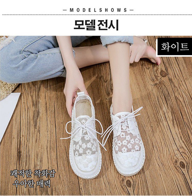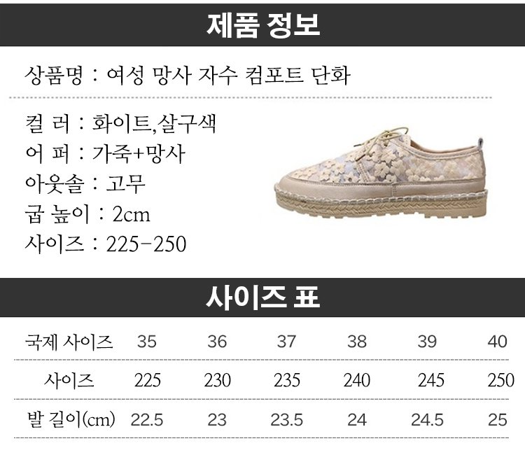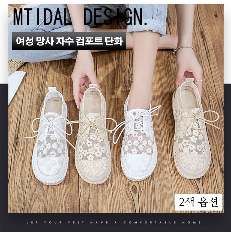 여성 망사 자수 컴포트 단화