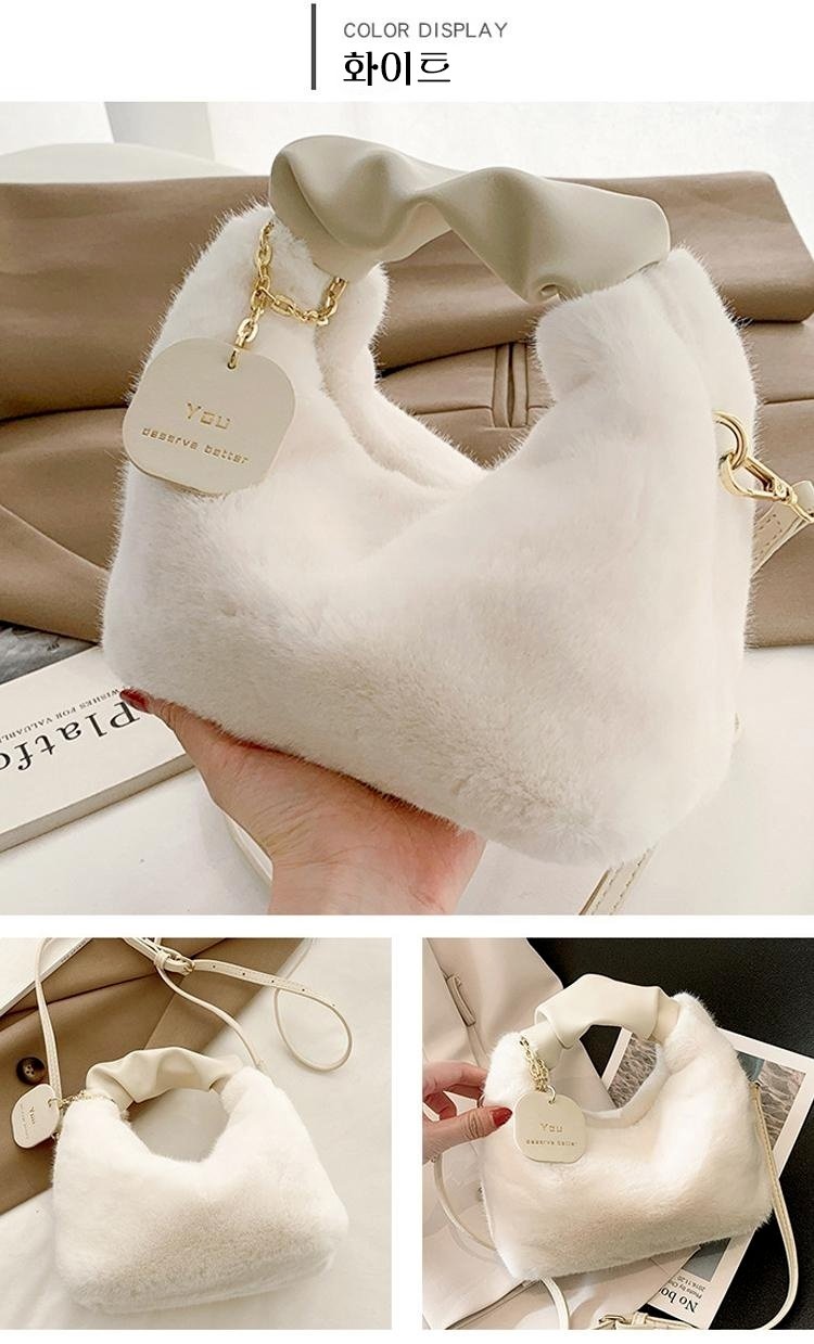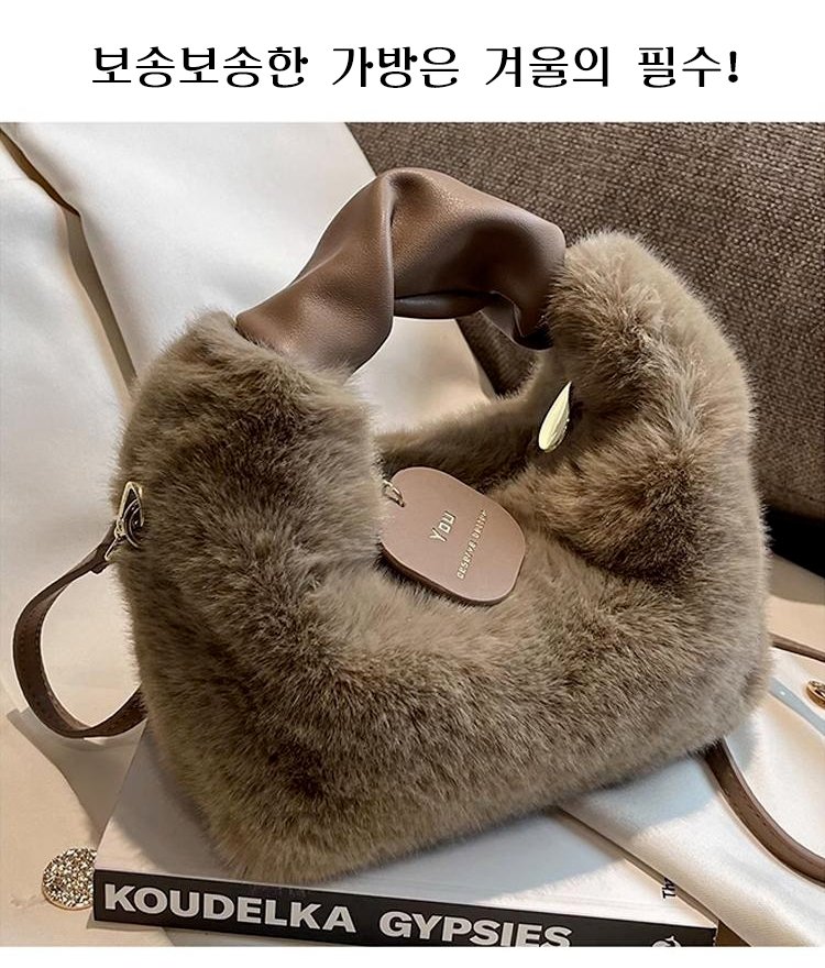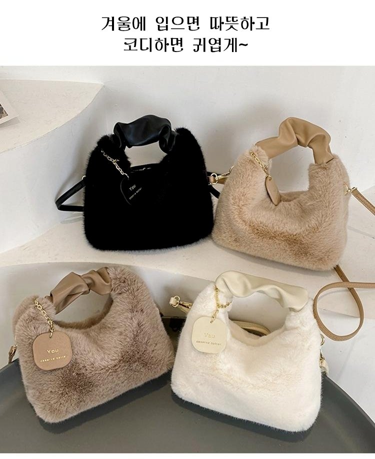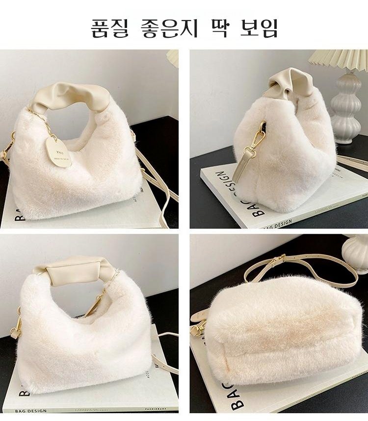 크림 뽀글이 작은 토트백