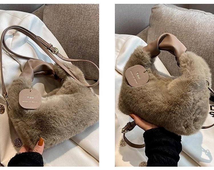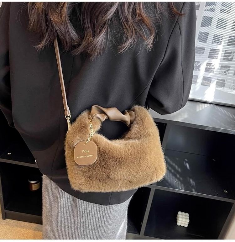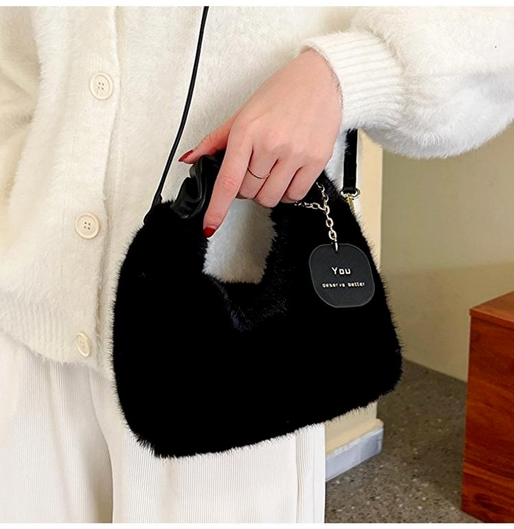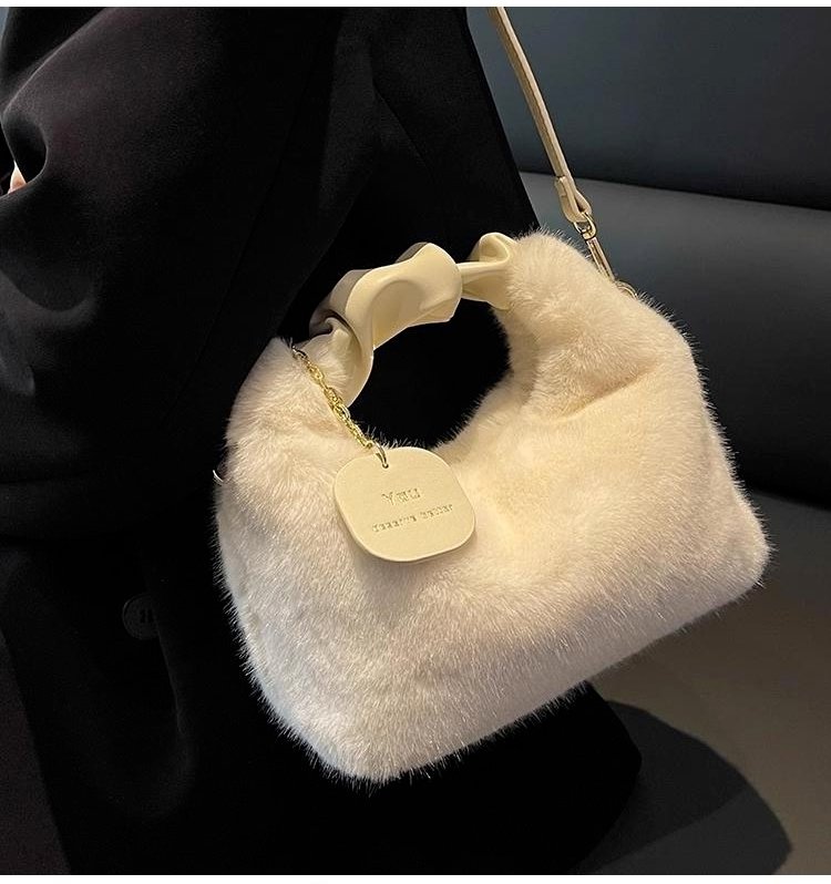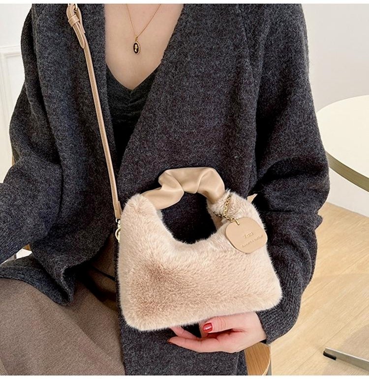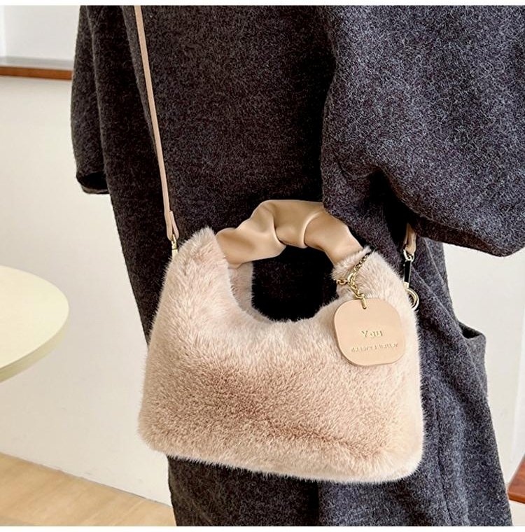 크림 뽀글이 작은 토트백